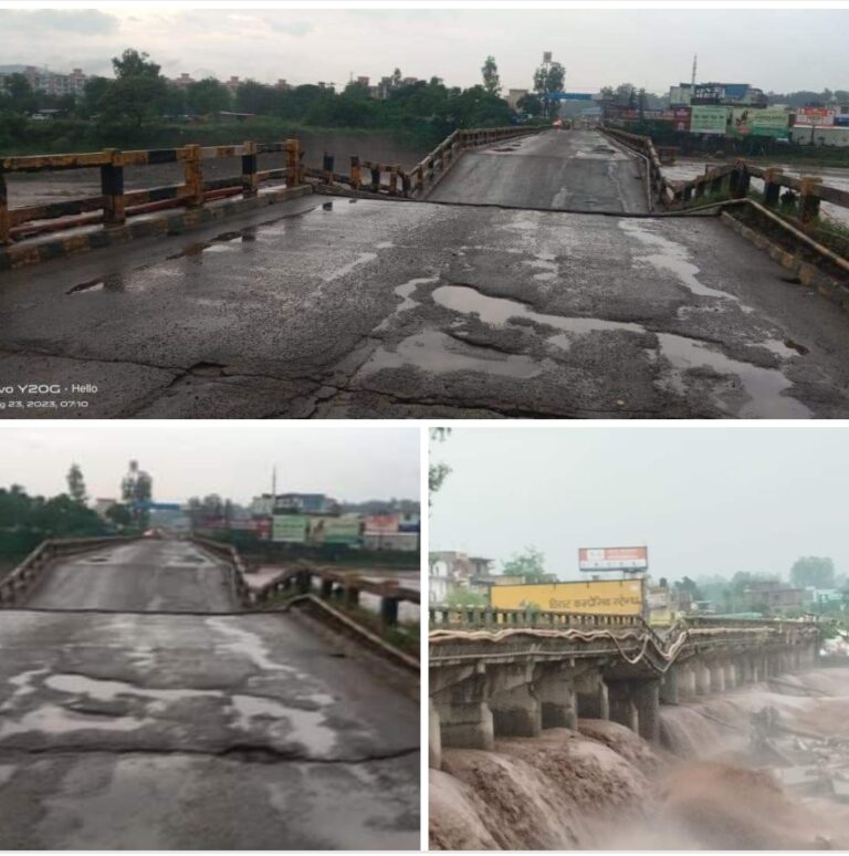 One pillar has collapsed and the bridge is bent in the middle. Traffic has been permanently stopped at Baddi Main...
