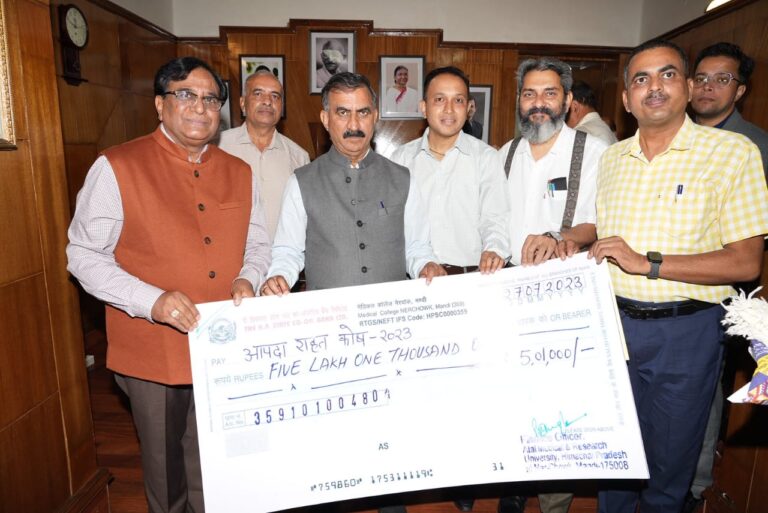 Atal Medical and Research University Mandi presented a Cheque of Rupees Five Lakh One Thousand to Chief Minister Thakur Sukhvinder...