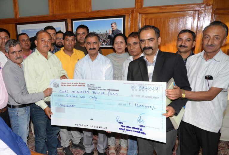 HP Zila Parishad Officers and Employees Association presented a cheque of Rupees Sixteen Lakh to Chief Minister Thakur Sukhvinder Singh...