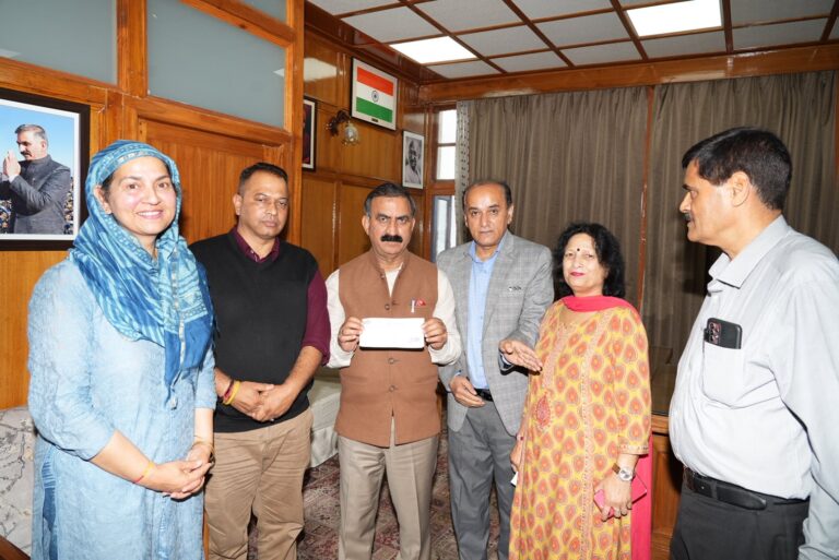 A cheque of Rupees Twenty One thousand was presented to Chief Minister Thakur Sukhvinder Singh Sukhu by Venkat Verma Bhagat...
