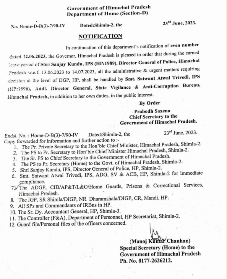 पुलिस विभाग में फेरबदल डीजीपी का कार्यभार देखेंगे अब आईपीएस अधिकारी सतवंत अटवाल ।