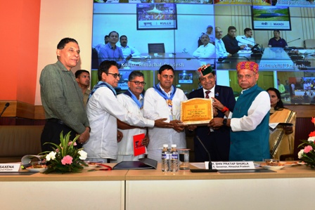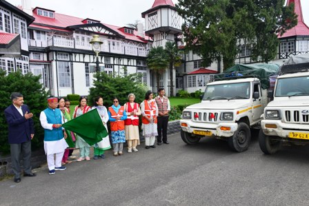 Governor Shiv Pratap Shukla flagged off three vehicles carrying relief material through Himachal Pradesh State Red Cross Society for Nirmand...