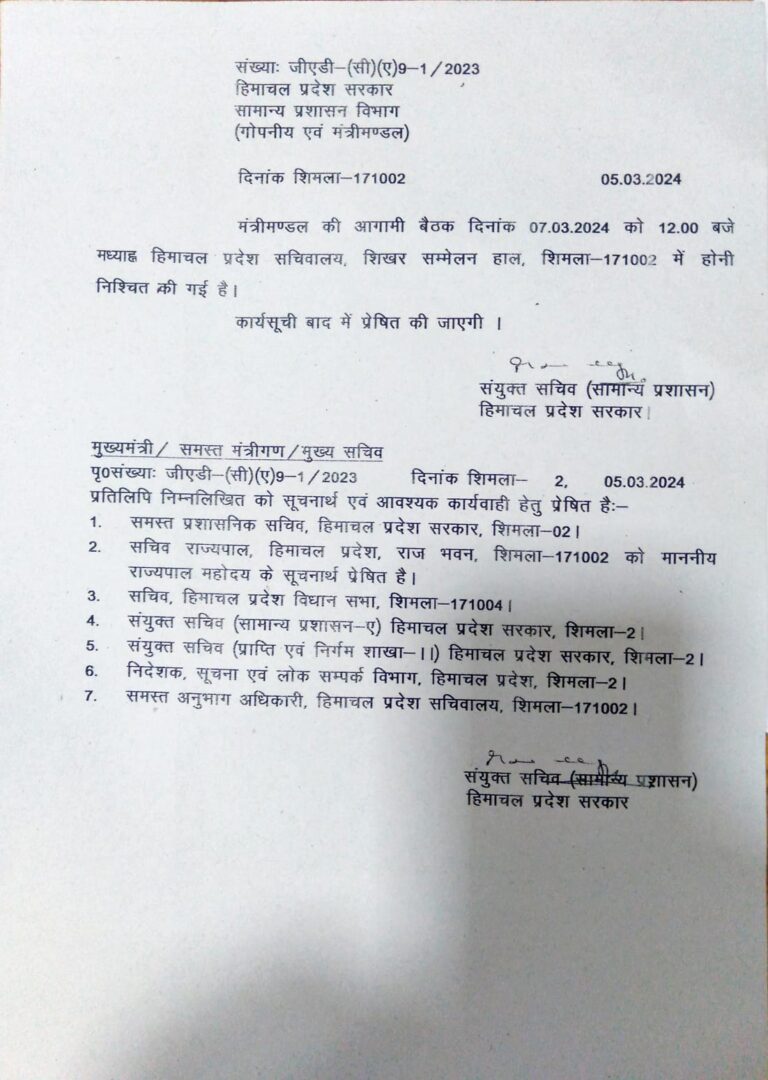 SHIMLA 5th March, 2024 Announces mini-secretariat for Nerwa and Kupvi • Lambasts BJP for their evil attempt to overthrow democratically...