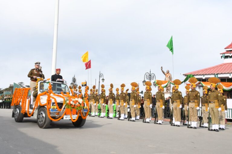 Governor unfurls the tricolour at Ridge Governor Shiv Pratap Shukla unfurled the National Flag on the 75th Republic Day state level...
