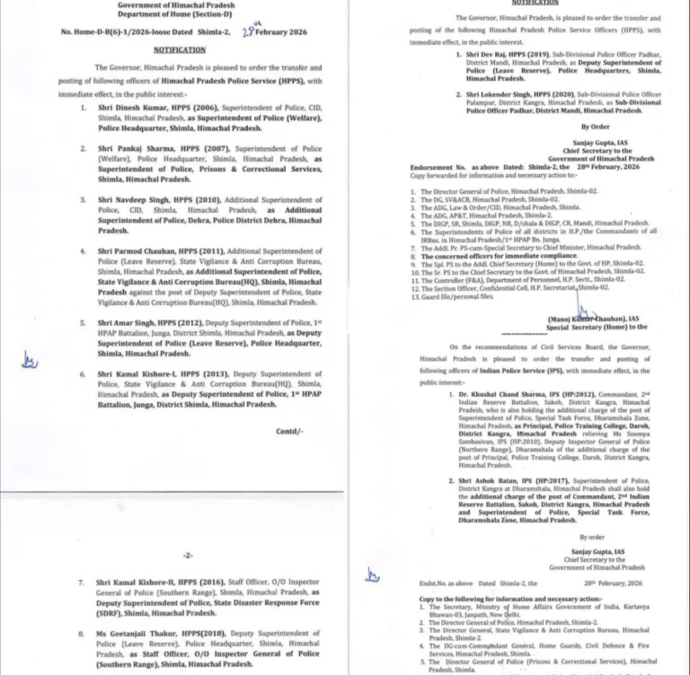 SHIMLA 24 November, 2025 HP Cabinet Decisions The State Cabinet, in its meeting held here today under the Chairmanship of...