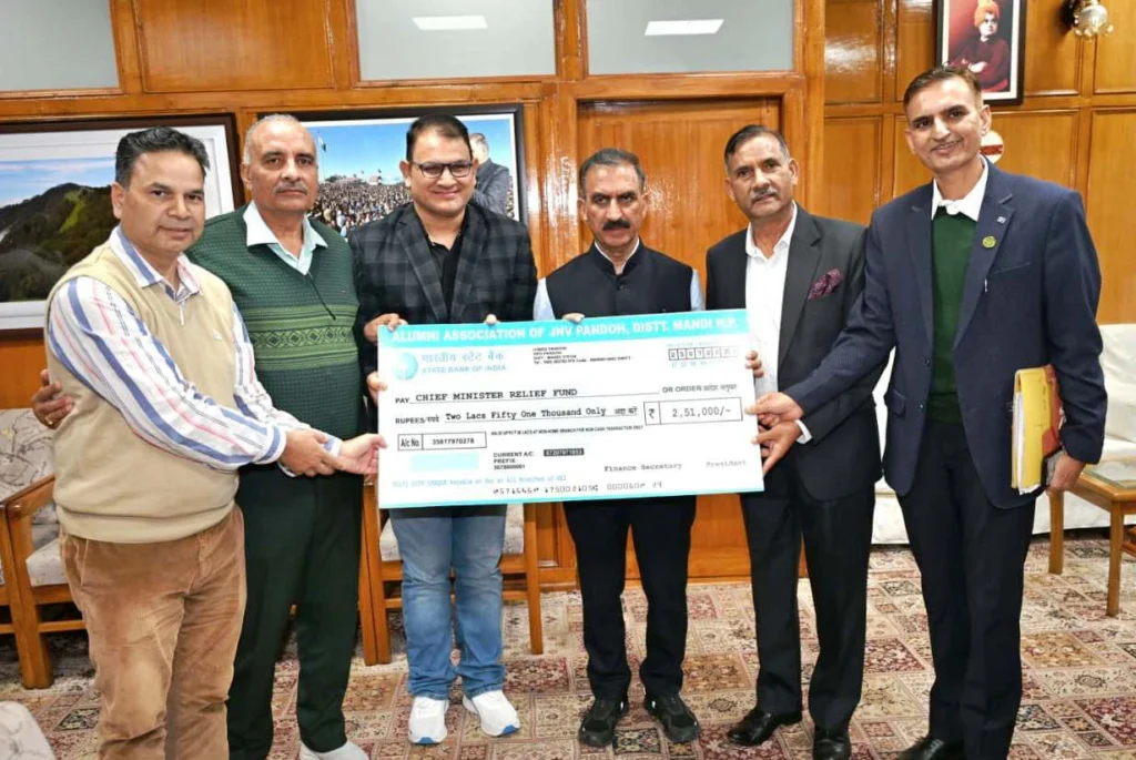 Himachal Shimla Contribution Towards CMRF 1 min read 2 months ago Shimla Oct 16: Alumni Association of Jawahar Navodaya Vidyalaya Pandoh, District Mandi presented a cheque of Rs. 2.51 lakh to Chief Minister Thakur Sukhvinder Singh Sukhu towards Chief Minister Relief Fund at Shimla last evening. Continue Reading Previous Congress leader demands three CBSE schools in Jogindernagar constituencyNext St. Edward’s School, Shimla, Wins ‘School of the Year’ in India School Rankings 2025–26