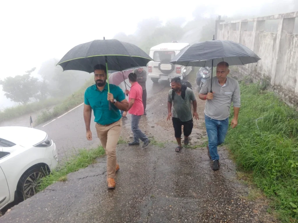 Bangana, September 2 – Deputy Commissioner Una, Jatin Lal, on Tuesday visited Gioad village in Gram Panchayat Thara under Bangana subdivision to assess damages caused by heavy rainfall and landslides. He was accompanied by SDM Bangana Sonu Goyal, Naib Tehsildar Balwinder Singh, and officials from concerned departments.