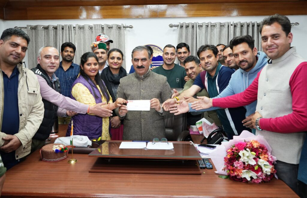 forest department employees presented a cheque of Rupees 1.11 lakh to CM