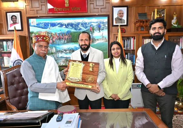 Shimla, Nov 28: A delegation from IEC University, Atal Shiksha Kunj, paid a courtesy visit to the Governor of Himachal Pradesh at Raj Bhavan on the occasion of Constitution Day 2025. The team included the Registrar, Dean Academics, and the Dean of the Management Department. The delegation extended warm greetings and presented a shawl, traditional cap, and a memento to mark the significance of the day.