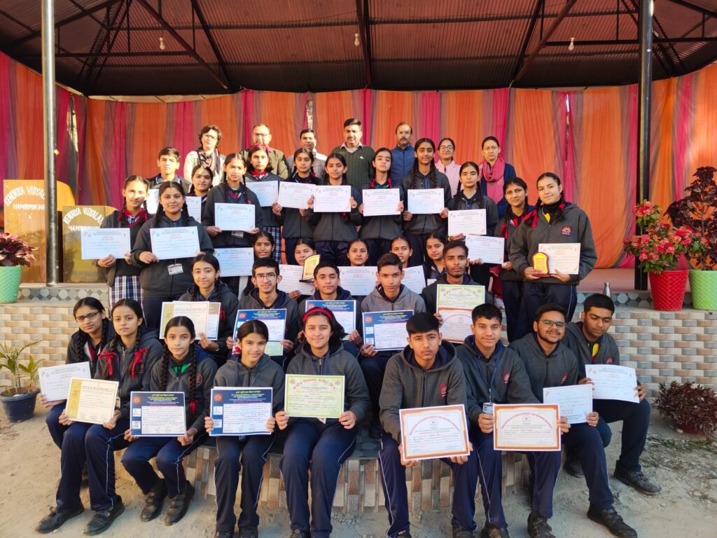 Additionally, three students, Dinesh Kumar, Daksh Saroch, and Anmol Datyal, received the Inspire Award in the health category for representing Kendriya Vidyalaya Hamirpur at the district-level exhibition in Una. In the cluster-level Science Exhibition at Kendriya Vidyalaya Nadaun, Anshul Thakur and Mishel secured the first position in health, while Anshul Thakur and Kavyansh Thakur secured the second position in competition thinking. Both students will represent their school at the zonal-level competition scheduled for December 22, 2023, in Kendriya Vidyalaya No. 2 Ambala.