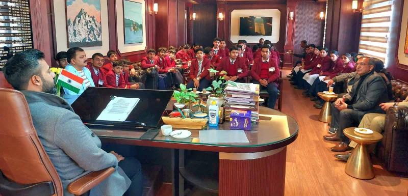 Una | January 30, 2026: Students and teachers of PM SHRI Jawahar Navodaya Vidyalaya, Pehku Bela, met Deputy Commissioner Jatin Lal following their outstanding achievement in the Model Youth Gram Sabha Competition, where the school secured first position at the national level in the Jawahar Navodaya Vidyalaya category.