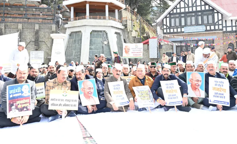 Chief Minister Thakur Sukhvinder Singh Sukhu on Monday, along with members of his Cabinet, staged a protest near the statue of Mahatma Gandhi at the Ridge, Shimla, opposing the Central Government’s decision to discontinue the MNREGA scheme.