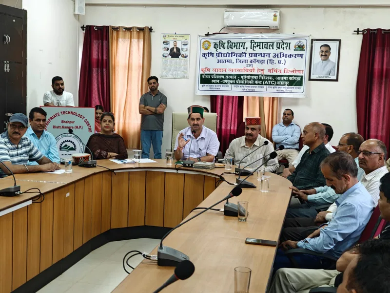 Shahpur, Sept 21: A one-year diploma training program for agricultural input dealers was launched today at the Appropriate Technology Institute (ATC) Shahpur by MLA and Deputy Chief Whip, Kewal Singh Pathania, under the ATMA initiative. Pathania said the program will benefit farmers and horticulturists by ensuring access to quality fertilizers and crop medicines locally, reducing costs and boosting yields. After completion, trainees will receive licenses from ATMA to sell agri-inputs. He also directed officials to ensure timely soil testing for better crop management. The program has enrolled 40 trainees from five Kangra blocks—Rait, Fatehpur, Nagrota Surian, Nurpur, and Indora—and will be conducted every Sunday over a year.