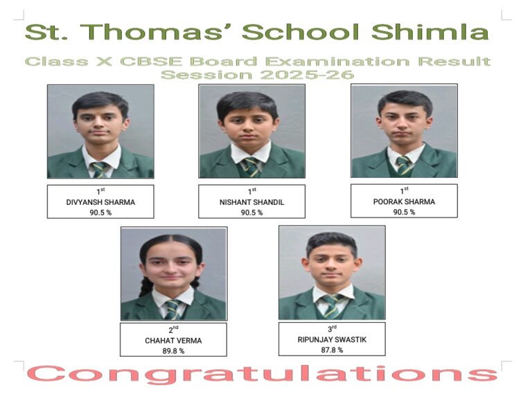 Shimla, April 16: St. Thomas’ School, Shimla, has once again demonstrated academic excellence with outstanding results in the Class X...