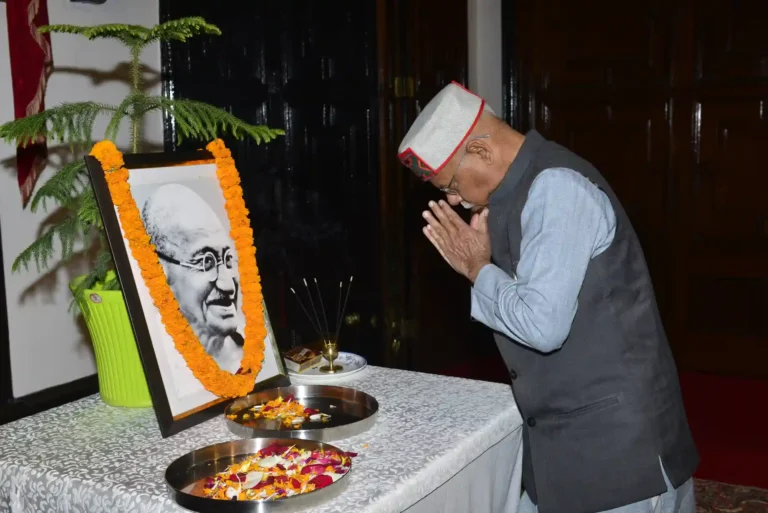 1 min read Himachal Shimla Governor pays floral tribute to Mahatma Gandhi on Martyrs’ Day 4 weeks ago SHIMLA 30 January, 2026 A tribute meeting was held at Lok Bhavan on the martyrdom day of Mahatma Gandhi, the...