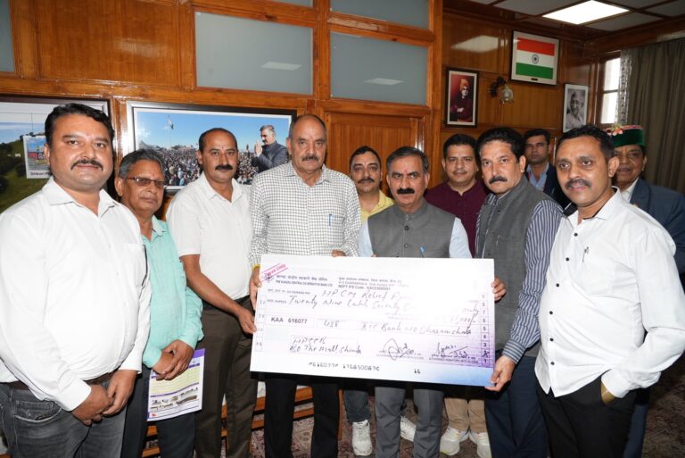 KCC bank association presented a cheque of rupees twenty nine lakh seventy one thousand to Chief Minister Thakur Sukhvinder Singh...